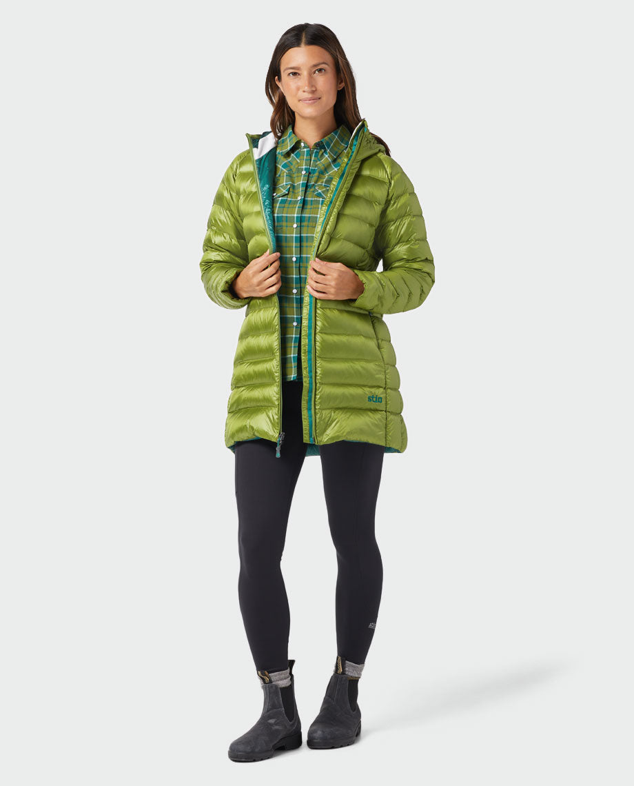 What makes it special? Made from 100% recycled materials, the exterior of the parka boasts a soft and supple feel that's lightweight yet remarkably warm. The 800-fill goose down is water-repellent, thanks to the latest innovation in insulation technology from Allied Feather, and it's responsibly sourced under the Responsible Down Standard Certification. The mid-thigh length and narrow baffle design make the parka extra warm, but also very stylish, making it perfect for winter stargazing, walking the dog, or a day on the hill. The adjustable fixed hood, handwarmer pockets, and interior security pocket make it a fully-featured jacket that's practical too. Compared to other jackets in the market, the Stio Hometown Down Parka stands out for its sustainability and technical innovation.